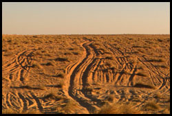 lines in the sand left by the cars, trucks and bikes, and the stories from